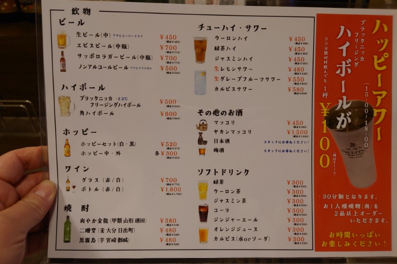 ハイボール50円の時間帯なら1人1,500円あればお肉を食べながら飲めちゃう…!