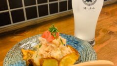 アラカルトからは赤皿貝酒蒸し、焼き茄子とろろあんかけ、牡蠣の竜田揚げ、ほや唐揚げ、茎わかめのから揚げ。