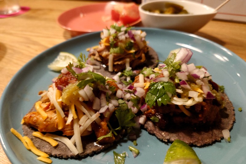 食べたのはメキシカンミートとカルニータス。どちらもおいしいんだけど、特にカルニータスのタコスが驚くほどおいしい!