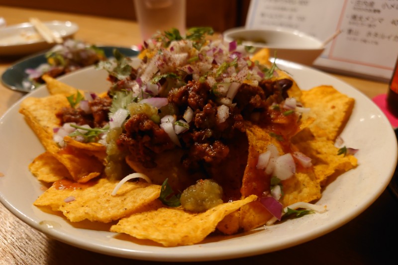 ナチョスにはメキシカンミートとサルサがたっぷり。