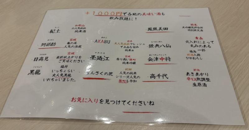 飲み放題の日本酒は、レア酒狙いじゃ無ければこちらで充分なラインナップ……