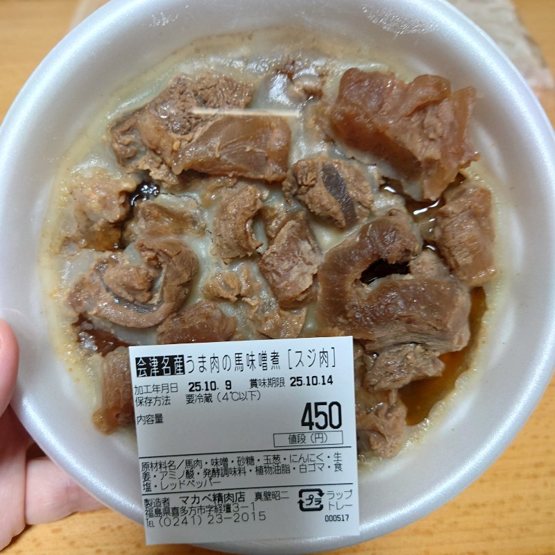 馬の筋肉を自分で買って作っても良いけど、味加減も良いし手間なしで食べられるのはありがたい。しかも450円!