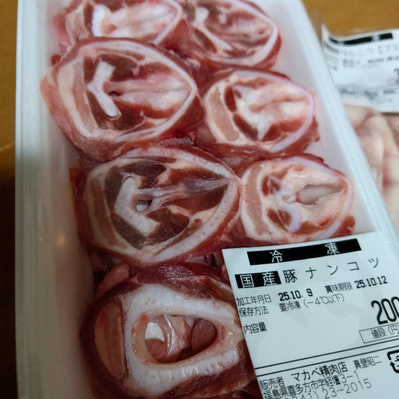 ホルモンでは特にフエ(豚舌なんこつ。クツベラ、こりこりなどとも呼ばれる)が好きなので、コレが買えたのが1番嬉しかった!!