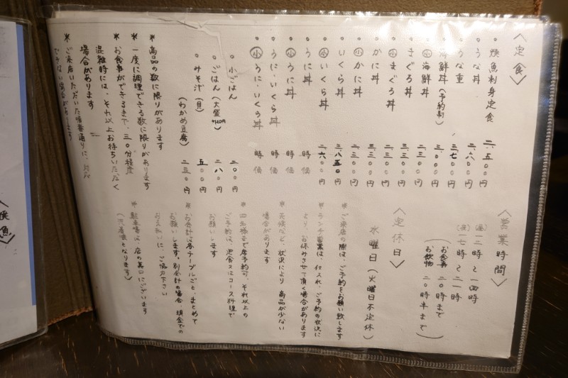 ランチメニュー以外にも定食やお刺身などが注文できるようだ。