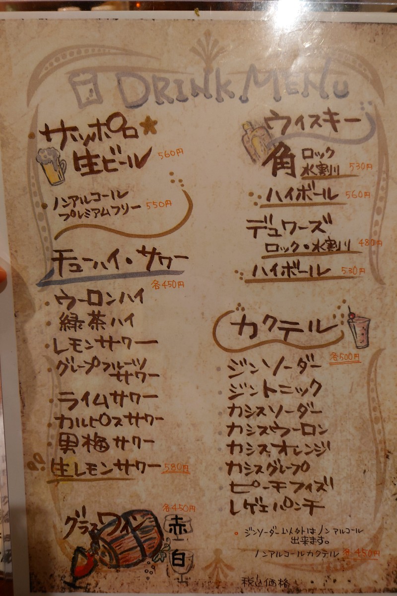 | 営業時間 | 月〜土 18:00〜24:00 日曜日 17:00〜23:00 |