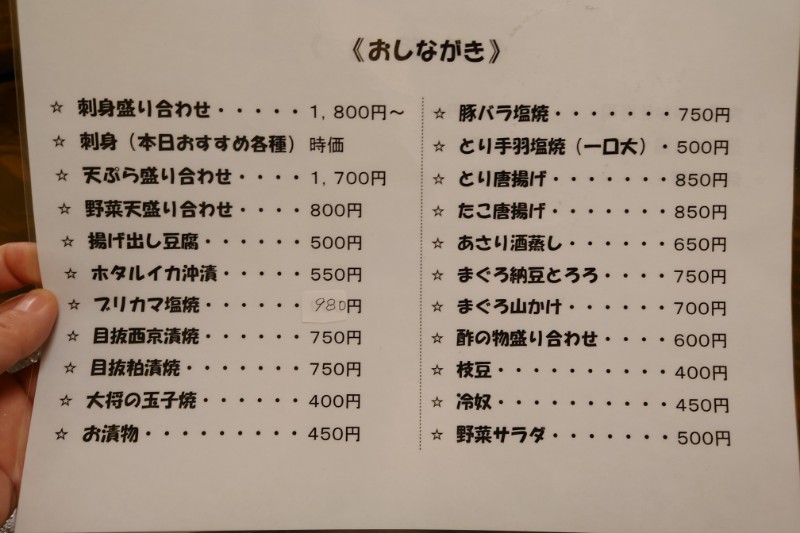 お刺身よりも先に揚げ出し豆腐が出てきて「おや??」とは思っていたんだけど、お刺身来る前に店じまいを始めそうだったので確認してみたらオーダー取れてなかった…