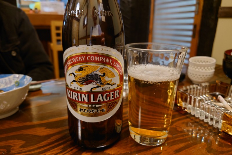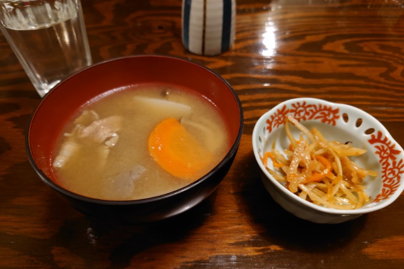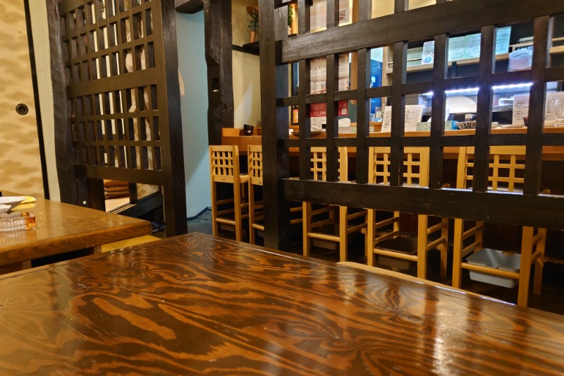 カウンターには仲の良さそうなサラリーマン2人。2つあるうちの1つのテーブル席(お座敷)では会社の飲み会が行われていた。