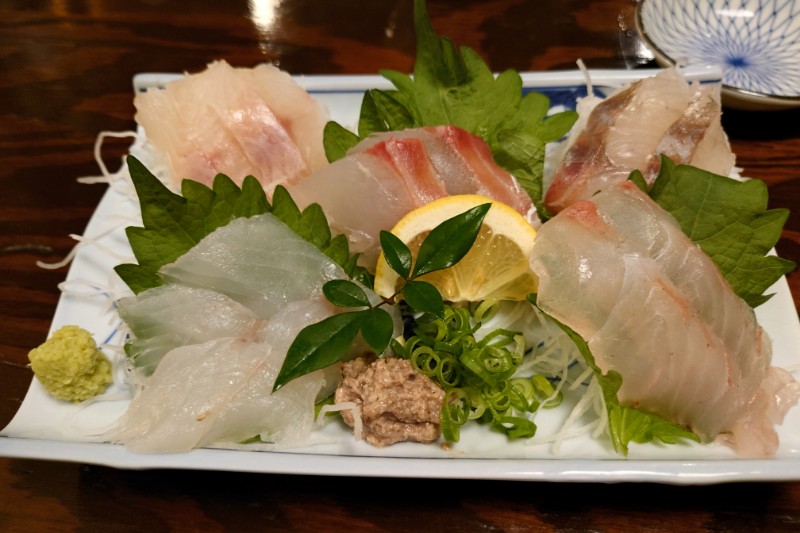 わたしの注文の仕方が悪かったと思うんだけど、待たせてすみませんとのことで白身魚4点盛りに1品(確かウマヅラハギ)追加サービスしてくれた。