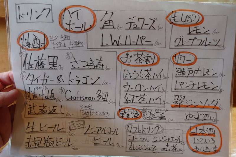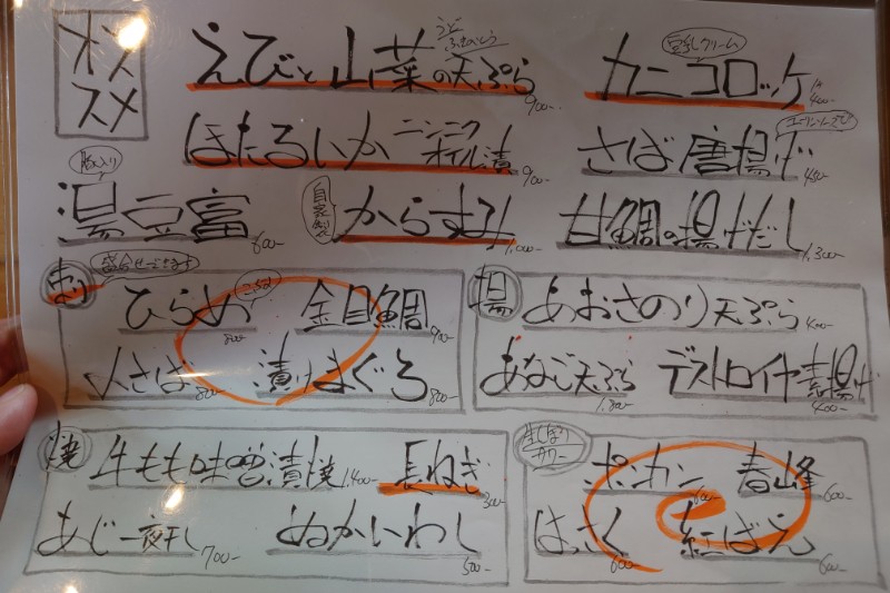 日本酒のメニュー表はなく、店主に訊くと教えてもらえたよ。