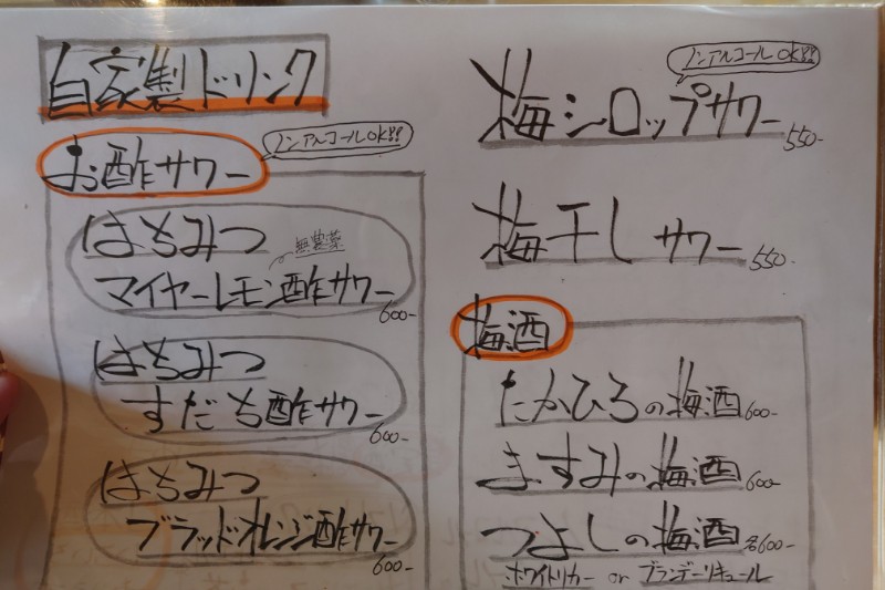 メニューはドリンクもお料理もこだわりを感じる内容。