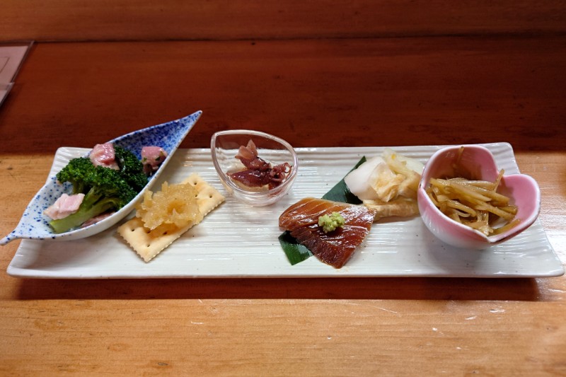店主さんからの、「まずはハッピーセットいきますか?」の一言で、(もしや、このメニュー表の中から何種か出る??)と想像…