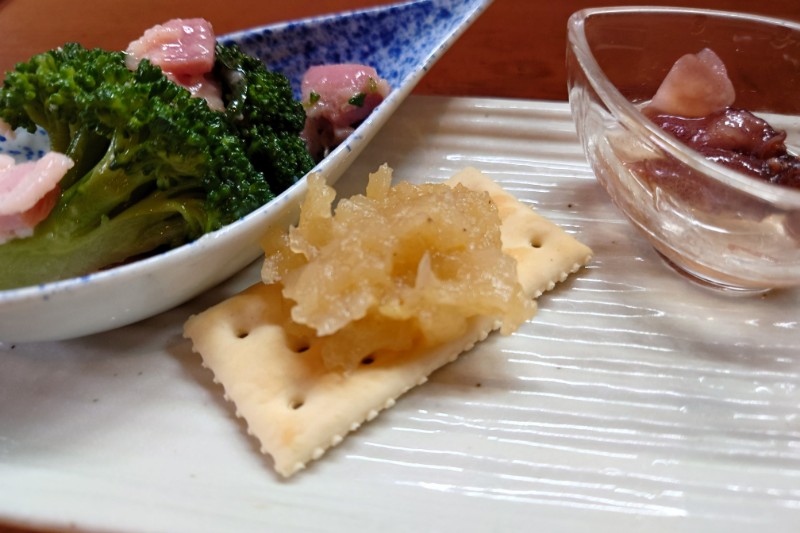 なるほど、この6品を用意している間、何かつまめるように1品だけ最初に出してくれたんだ!