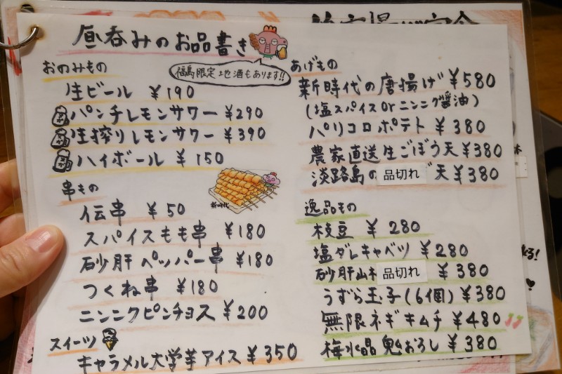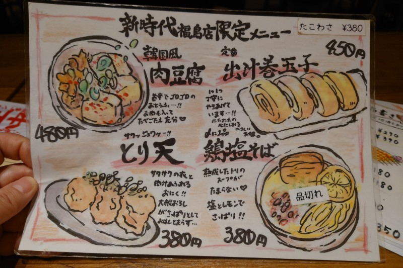 新時代福島西口店はフランチャイズのようで、新時代の定番メニュー以外にも独自メニューが充実しています。