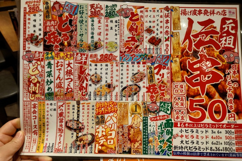 名物の伝串55円はじめ、100円台~高くても600円前後でおつまみが注文できちゃう。
