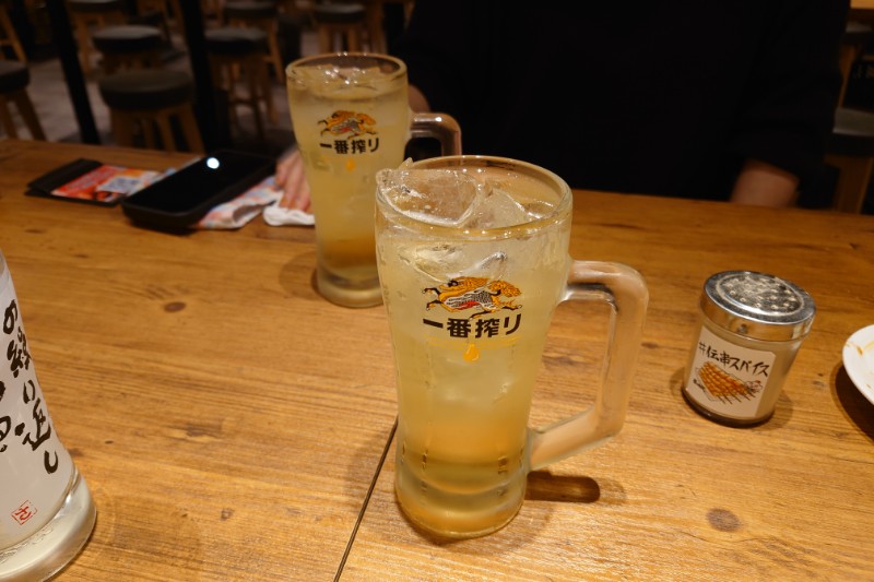伝串にはハイボールが良く合う。