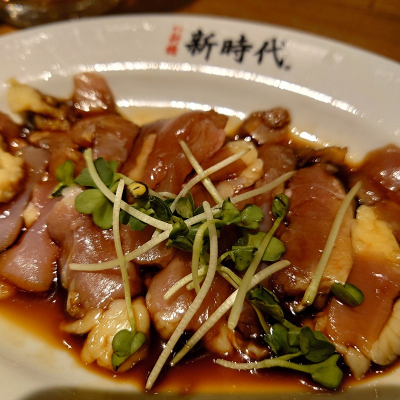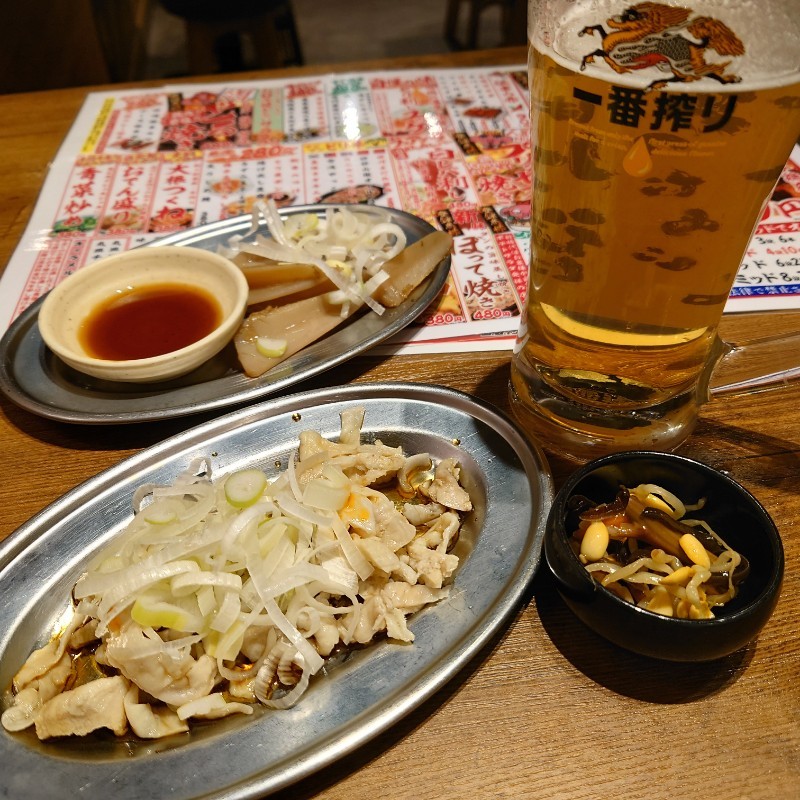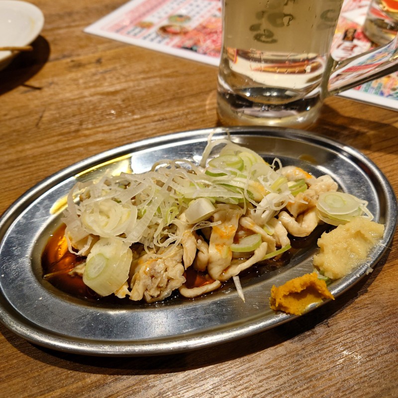 どる刺しの醤油は九州のコクのある甘い醤油が鶏刺しに合っておいしいんだけど、ポン酢なみにビシャビシャにかけられていてさすがにしょっぱかったな…